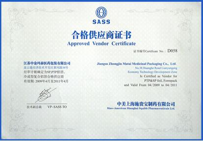 近日,我公司被中美上海施貴寶制藥有限公司評為2009-2011年度合格供應(yīng)商,并頒發(fā)證書。
