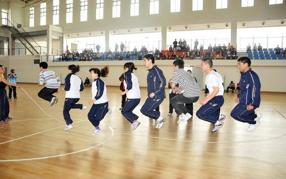 隨著運動會的全面展開,空曠的體育館內頓時成了一片歡樂的海洋。本次運動會以趣味性的游戲比賽為載體,共設置了消防器材使用、5人6足、集體跳繩、產銷一條龍、集體拔河、花樣跳繩以及鉆鉆鉆等比賽項目,項目設計集娛樂與競賽于一體,易于參加,又樂趣十足,吸引了一些平日甚少主動運動的員工也積極參與其中。一個個比賽項目既精彩紛呈又各有看點,首場的消防器材使用接力賽將消防知識與運動項目有趣結合,寓教于樂兩相宜;5人6足比賽拼的不僅是技術和體力,更是對團隊協作精神的考驗,場上配合默契的團隊,口號洪亮,齊頭并進,以驚人的速度沖到終點,讓觀眾在驚嘆之余也報以熱烈的掌聲;今年的集體跳繩項目,實力強勁的一工廠代表隊以2分鐘內跳出84個的絕對優勢蟬聯冠軍。