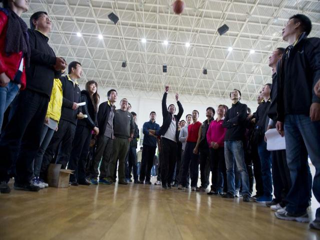 本屆運(yùn)動會共設(shè)置了羽毛球比賽、撲克牌摜蛋、消防器材使用接力、集體跳繩、踢毽子團(tuán)體賽、手足情深、車輪滾滾、仰臥起坐、定點(diǎn)投籃等10余個比賽項目,由各部門組合而成的6支代表隊以及公司高層領(lǐng)導(dǎo)參加了比賽。早上八點(diǎn)三十分,在櫻井董事長簡短而又熱情激昂的開幕辭中拉開了比賽的帷幕。