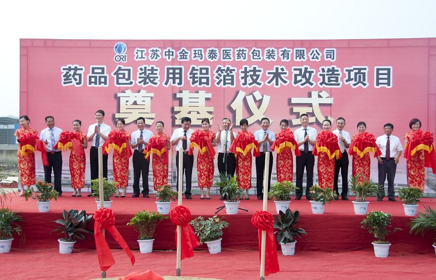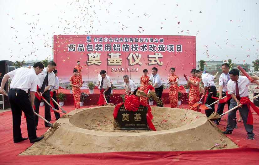 2015年7月24日,江蘇中金瑪泰醫(yī)藥包裝有限公司藥用包裝鋁箔技改項目奠基儀式在新廠區(qū)舉行,這標志著新工廠技改項目的建設(shè)正式拉開了帷幕。
