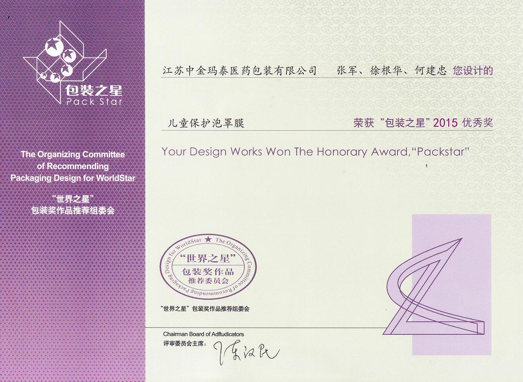 日前,本公司自行研發(fā)的新產(chǎn)品“兒童保護(hù)泡罩膜”榮獲“世界之星包裝獎(jiǎng)推薦委員會(huì)”頒發(fā)的“包裝之星”優(yōu)秀獎(jiǎng)。