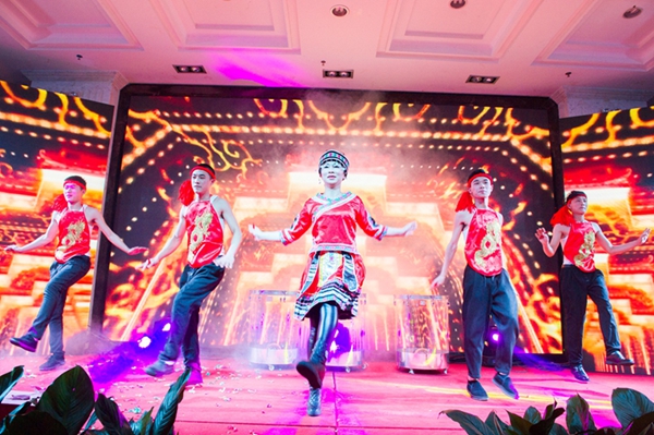 年會的文藝演出部分,在一工廠員工表演的活力四射、激情洋溢的開場舞中拉開了帷幕。專業的舞臺效果和色彩絢麗的燈光讓本場晚會在往年的基礎上提升到一個新的高度。晚會節目更是豐富多彩,各具特色,融合了古典時尚、民族流行等元素,歌舞、小品、相聲輪番上演,充分展示了中金瑪泰員工優秀的人文素養和健康向上的精神風貌。