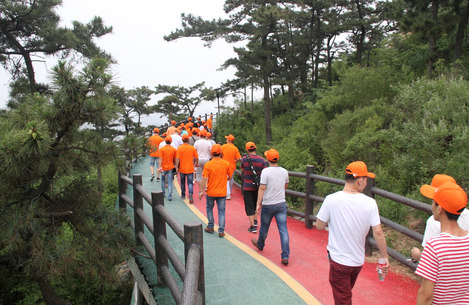 北固山風景秀麗、山色蔥郁,集林海、山石風光為一體,沿著5公里的仿木護欄一路前行,好似行走在詩情畫意中,伴隨著一路的草木清香和清涼涼的海風,讓人身心俱醉,回歸自然。5公里的路程走起來也需要很大的體力、耐力和毅力,終點清晰可見,而跨越終點才是勝利,領先的隊伍絲毫不敢放松,后面的隊伍隨時都會趕超上來,沖刺的決心使大家的腳步沒有絲毫懈怠。肆意揮灑的汗水,盡情釋放的能量,讓人盡享健康運動帶來的無比快樂。