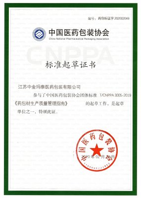 中國(guó)醫(yī)藥包裝協(xié)會(huì)團(tuán)體標(biāo)準(zhǔn)《藥包材生產(chǎn)質(zhì)量管理指南》(T/CNPPA 3005-2019)于2019年5月8日發(fā)布,自2019年5月8日起實(shí)施。